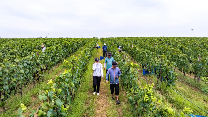 The early growing season of 2025 saw favorable temperatures and rainfall. However, July brought limited effective precipitation accompanied by prolonged high temperatures, leading to drought stress of the vines across some plots. Our timely activation of the drip irrigation system countered this, ensuring healthy vine development. Nonetheless, these specific climatic conditions in July caused the ripening period for all varieties to advance by at least one week.