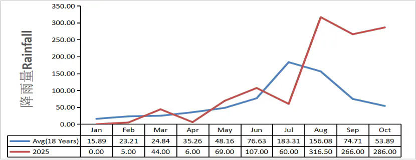 Figure 1: January-October 2025 Rainfall Comparison vs. 18-Year Average