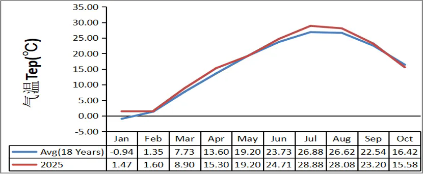 Figure 2: January-October 2025 Growing Degree Days Comparison vs. 18-Year Average